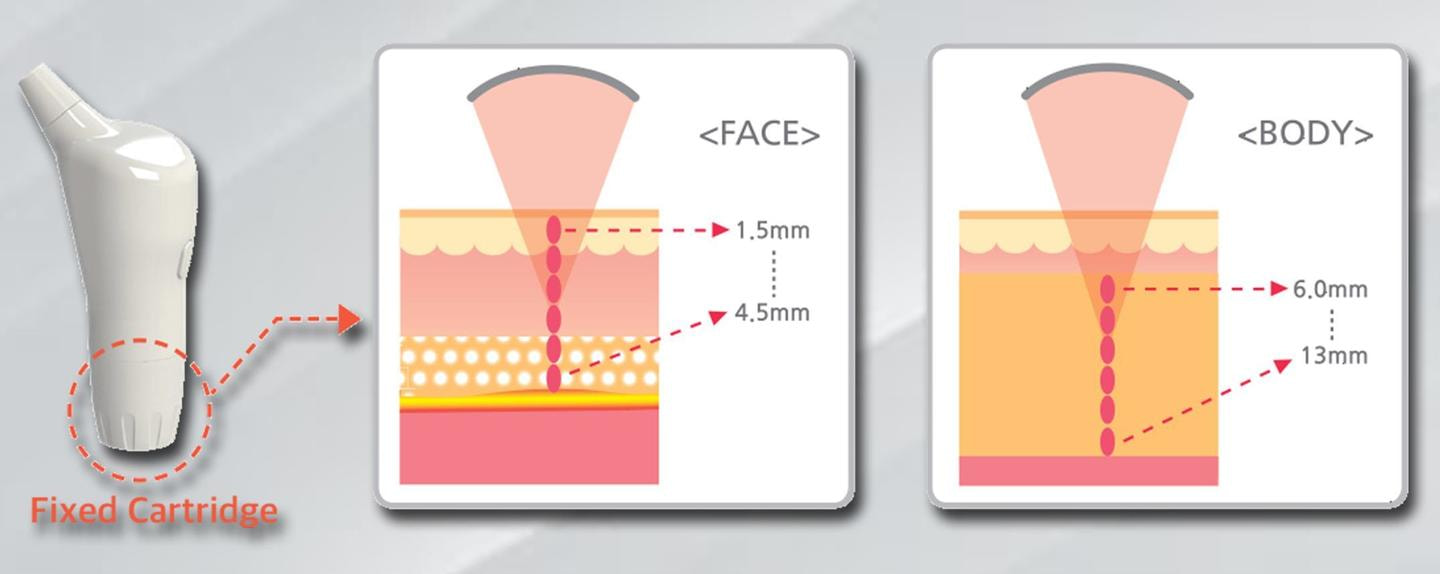HIPRO-Vは美容大国韓国から上陸した、次世代型の新型多焦点・多層式HIFUで、1つのハンドピースから皮下1.5mm〜4.5mmの深さを0.5mm刻みで調整し、真皮、皮下組織、SMAS層に熱エネルギーを効率的に与えることが可能です。