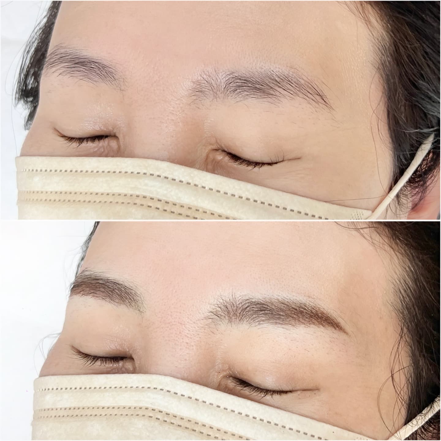 A.施術直後から約一週間かけて色味は50%ほどに落ち着き定着します。1回で十分定着する方もいますが、2~3回ほど施術を重ねて定着の度合いをあげることで理想的な仕上がりとなります。また、定着後にピグメント(色素)が拡散する場合があります。