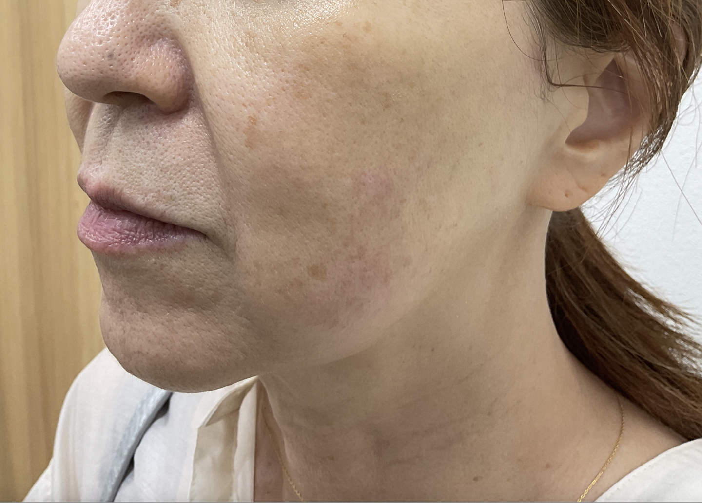 A. まれに治療後は赤みが数日~1週間出ることがあります。化粧でカバーできる程度です。