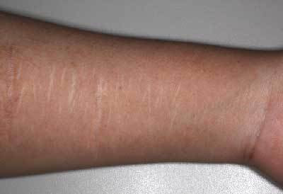 カミソリによるリストカット痕です。